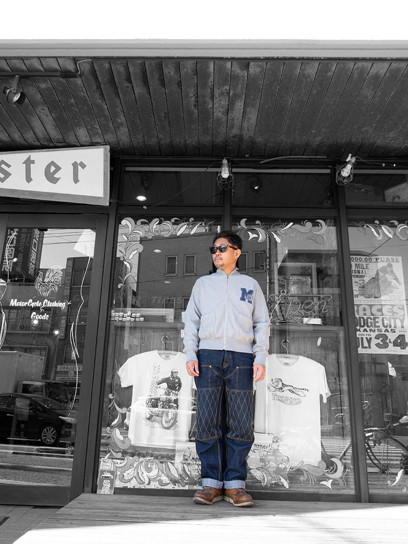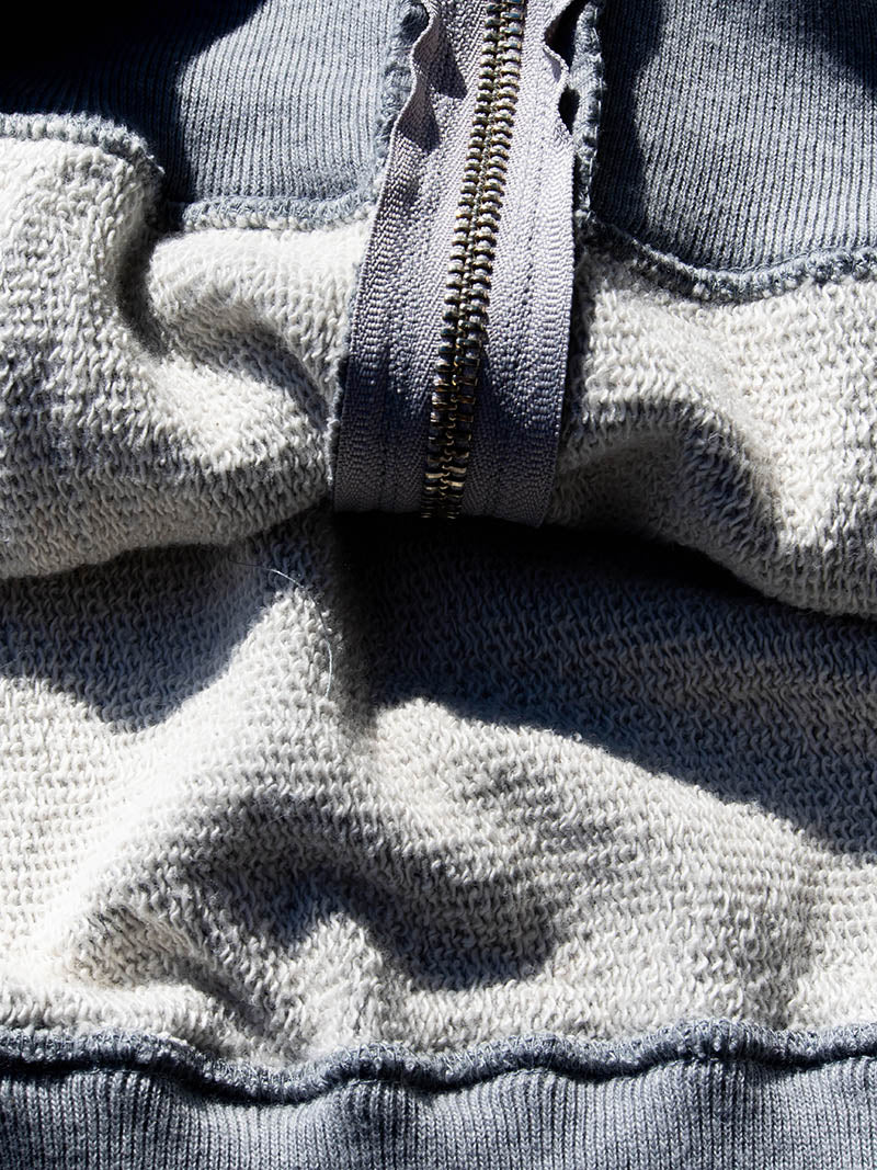 長リブに重量のあるメタルジップと、タイトフィットとヴィンテージライクな仕上がりも魅力です。