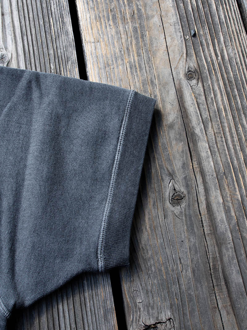 表面は20番手、裏面は10番手のBD糸を使用したがっしりした 裏毛生地にアップデート。表面を20番手の糸にすることでし なやかで着心地の良さにこだわりつつBD糸特有のザラっとし た粗野感も残したいいところ取りのアイテムに仕上がった。