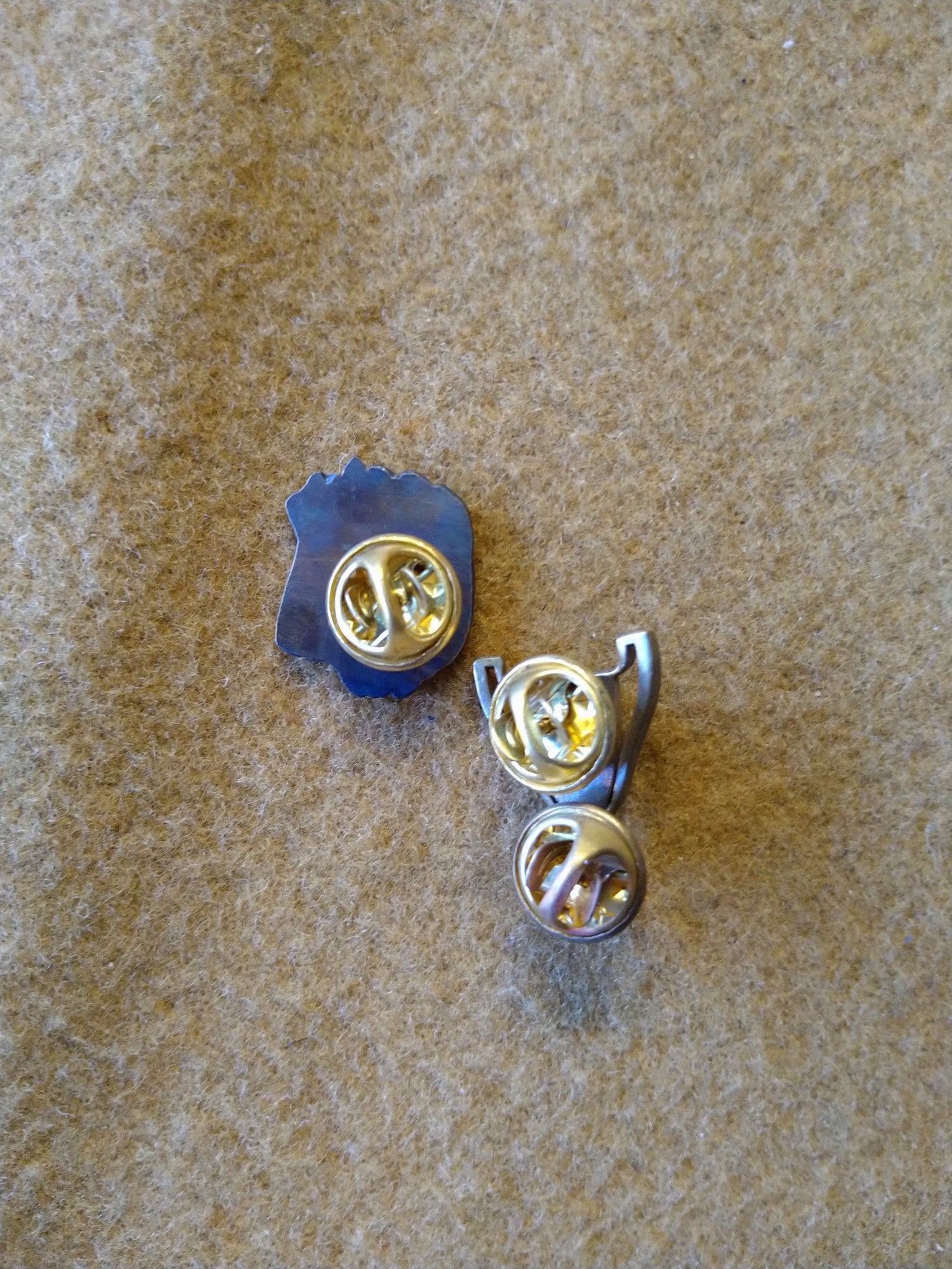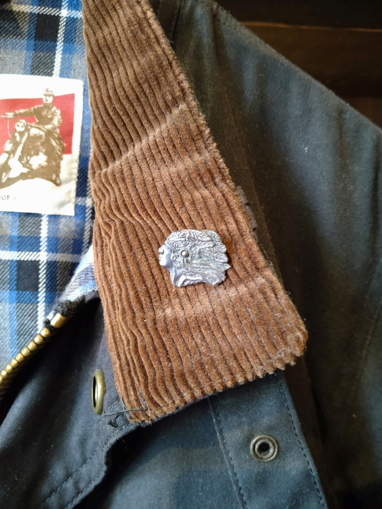 真鍮で成型し、艶消しに仕上げたオリジナルピンズ。