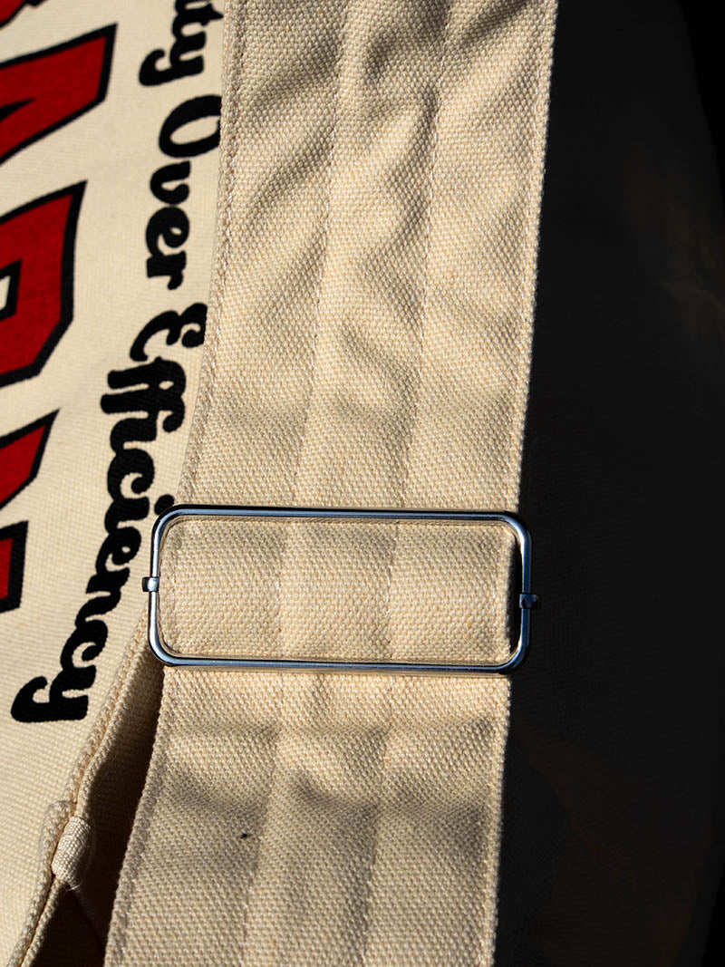 幅広のストラップは用意に長さ調整が可能。