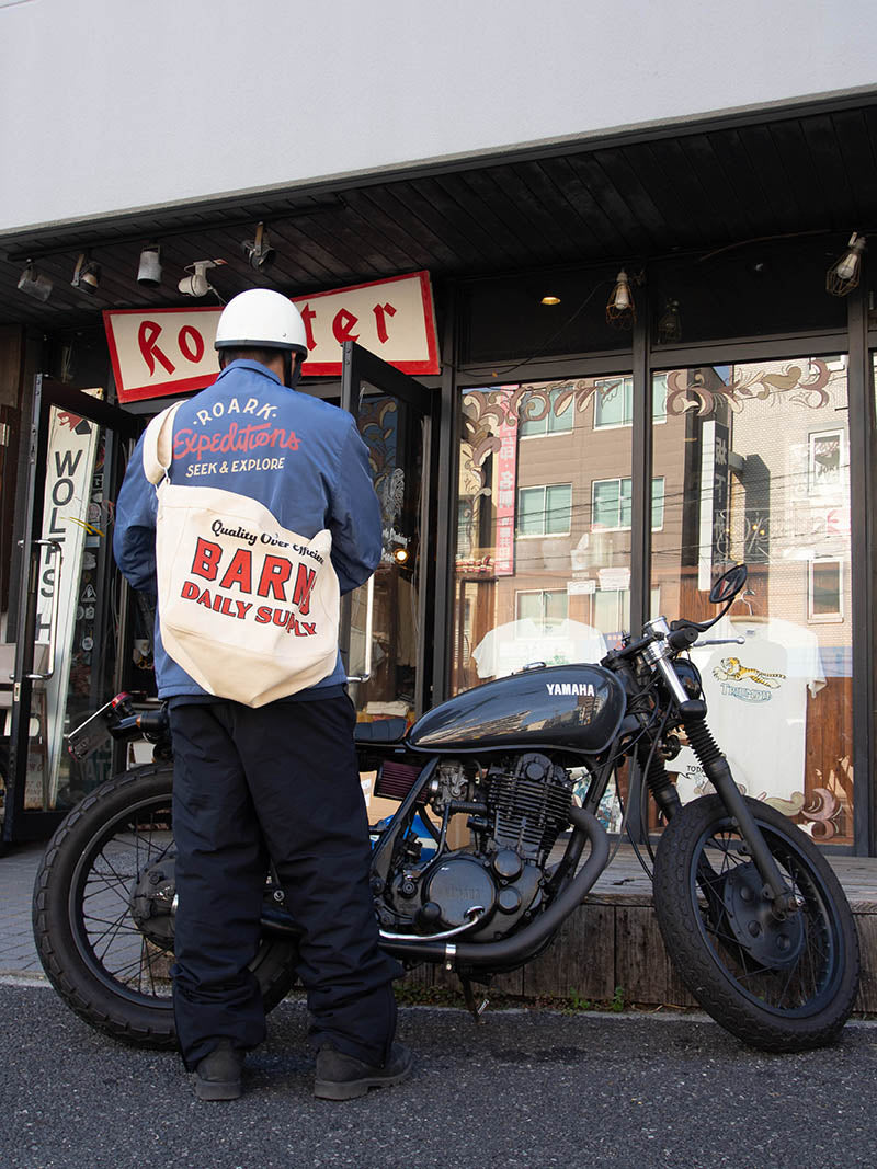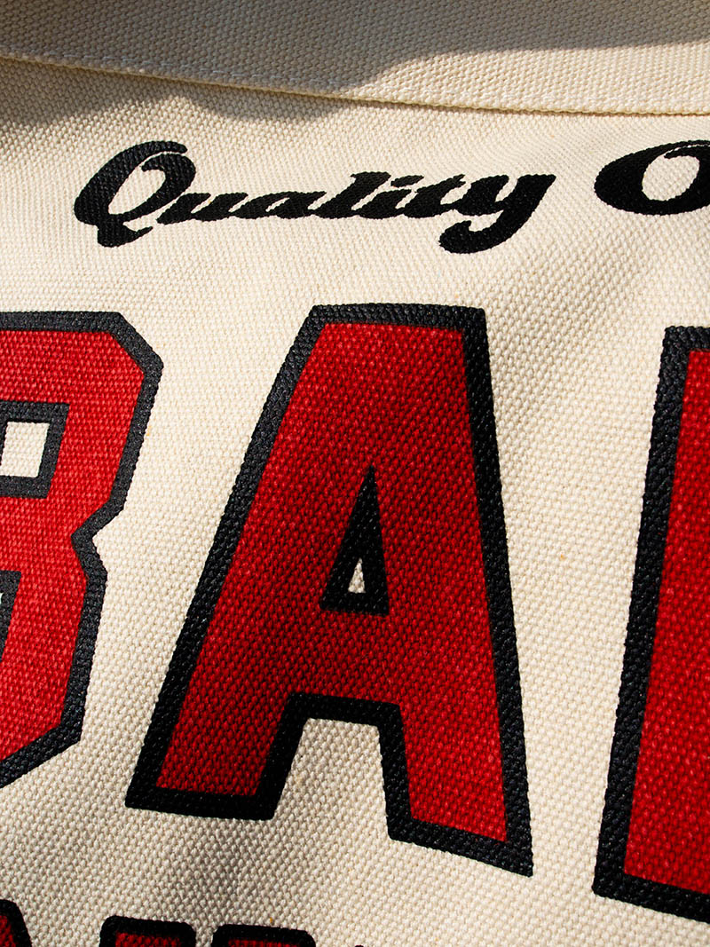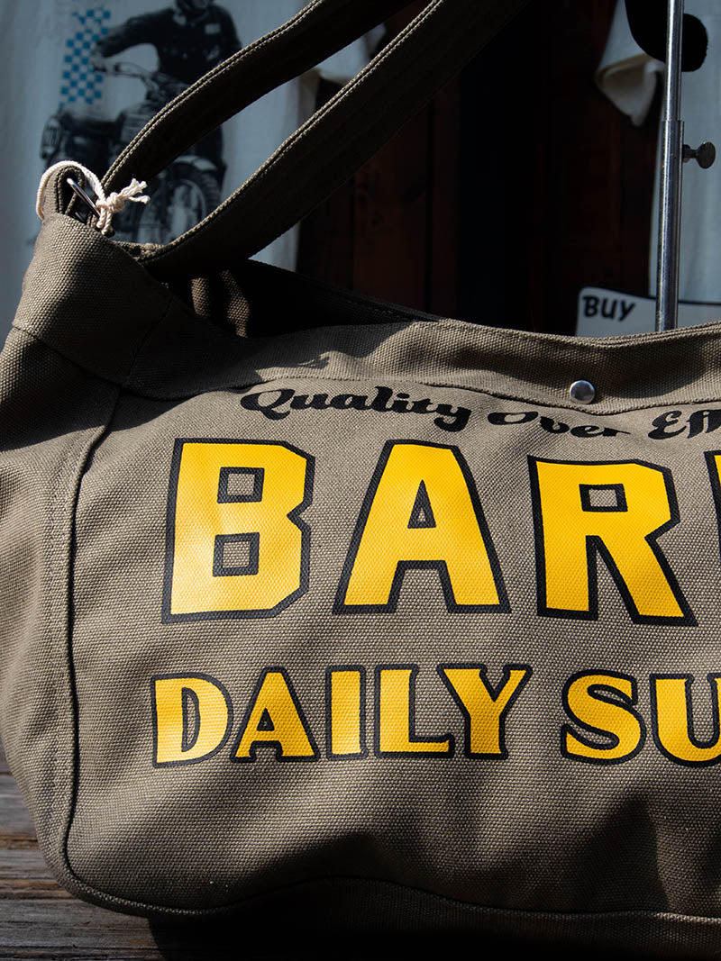 正面には染み込み(ナチュラル)半ラバ―プリント(オリーブ)で、”BARNS DAILY SUPPLY”が描かれ、ヴィンテージライクな仕上がりになっています。