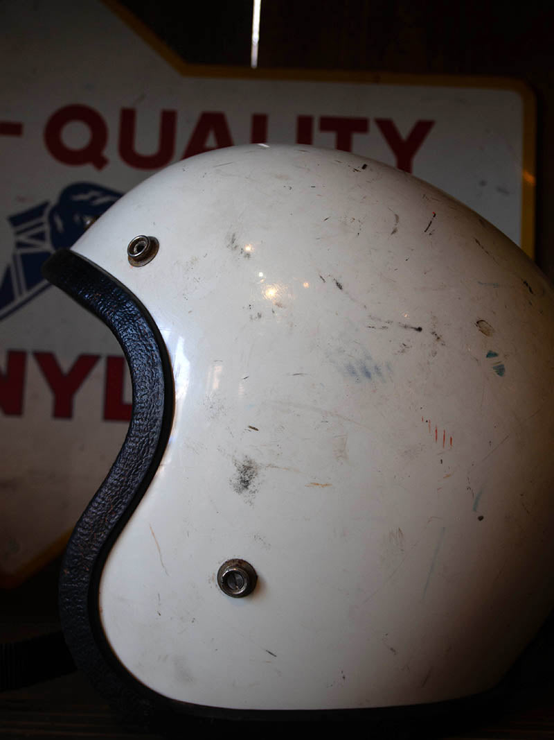 60年代までは自社工場でハーフヘルメットやレジスタルシリーズなどを手掛けてきましたが、70年代には自社工場を手放し、ALL SPORT社にOEM製造という流れになりました。