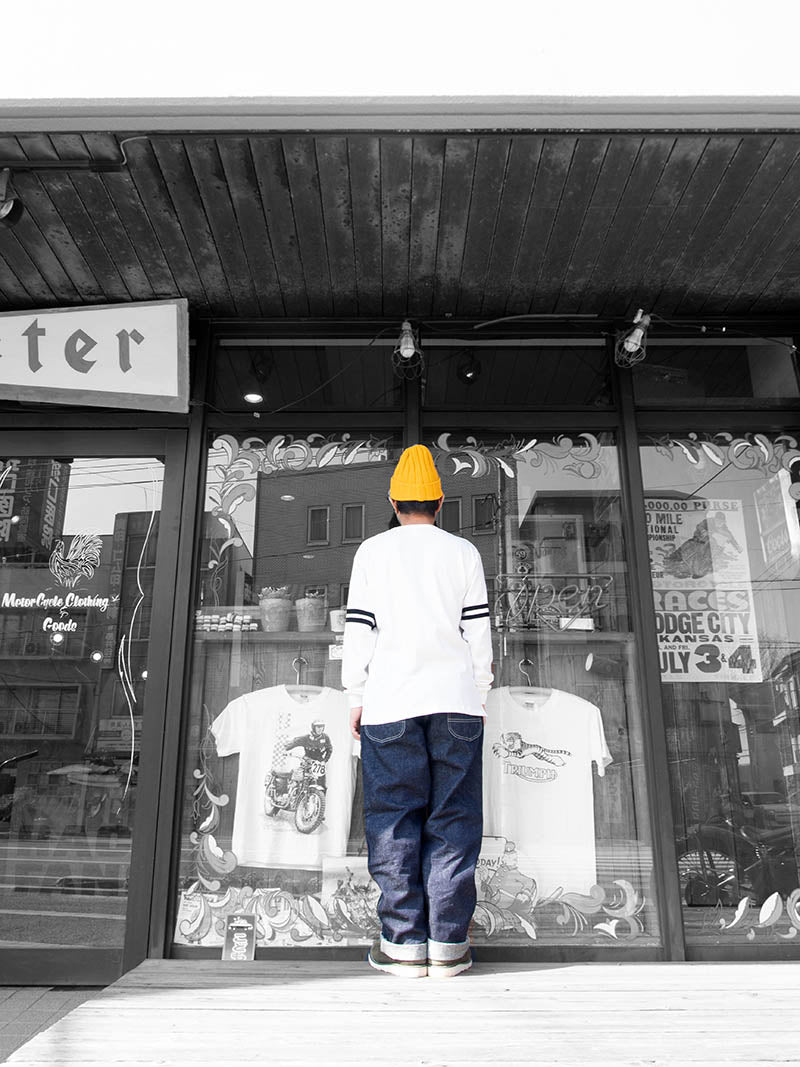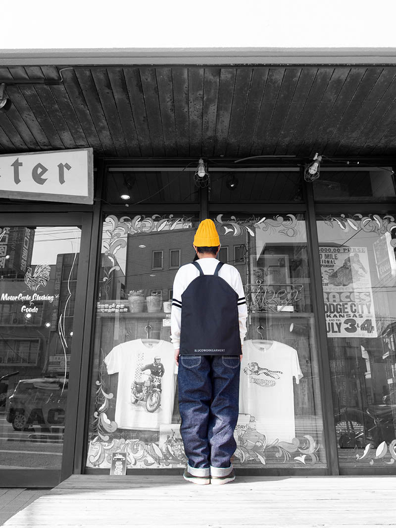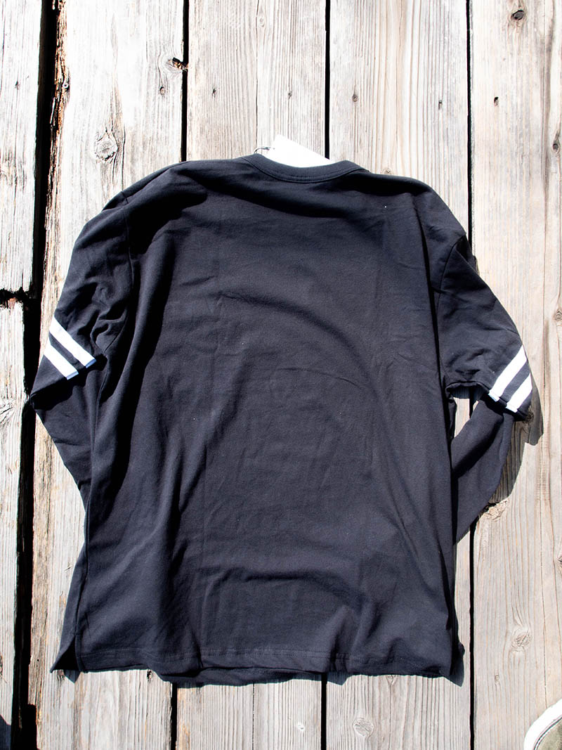 両袖に配した2本のラインはフロッキープリントで表現。BLUCOらしい雰囲気の良いディテールに仕上がりました。