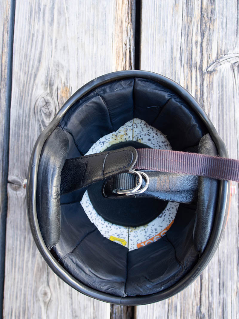ジェット型、ヴィンテージヘルメットの中でも最もシェルとのバランスが美しいモデルです。