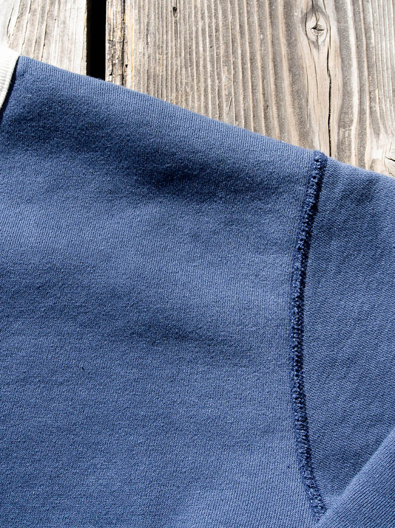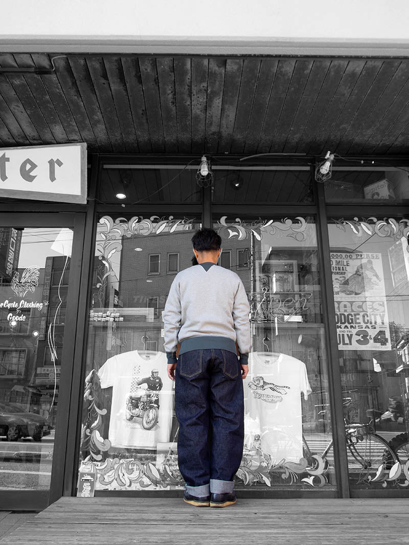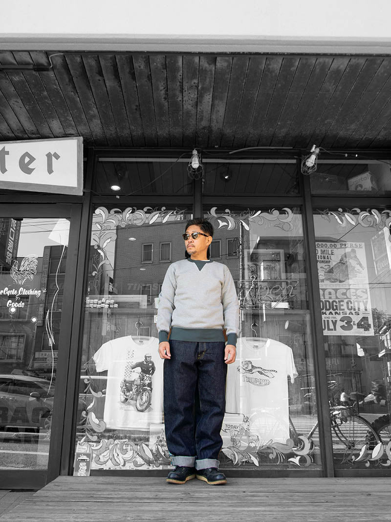 時代が吊編み機から高速シンカー編み機へと移行していく過渡期に使用されていた旧式のシンカー編み機を改良して作られた、小寸(COZUN)編み機。吊編み機ならではのやわらかさとシンカー編み機ならではハリコシが共存した旧式のシンカー編み機ならでは特徴を持つ。BARNS OUTFITTERSでは長年定番として展開し続けている。
