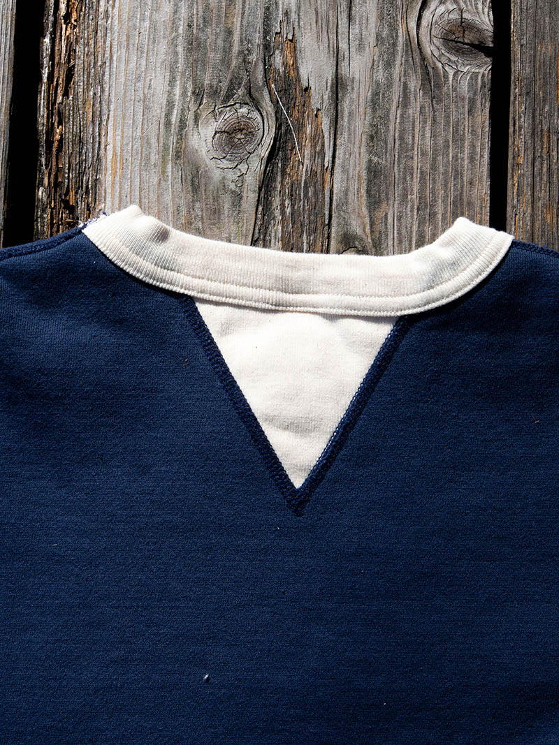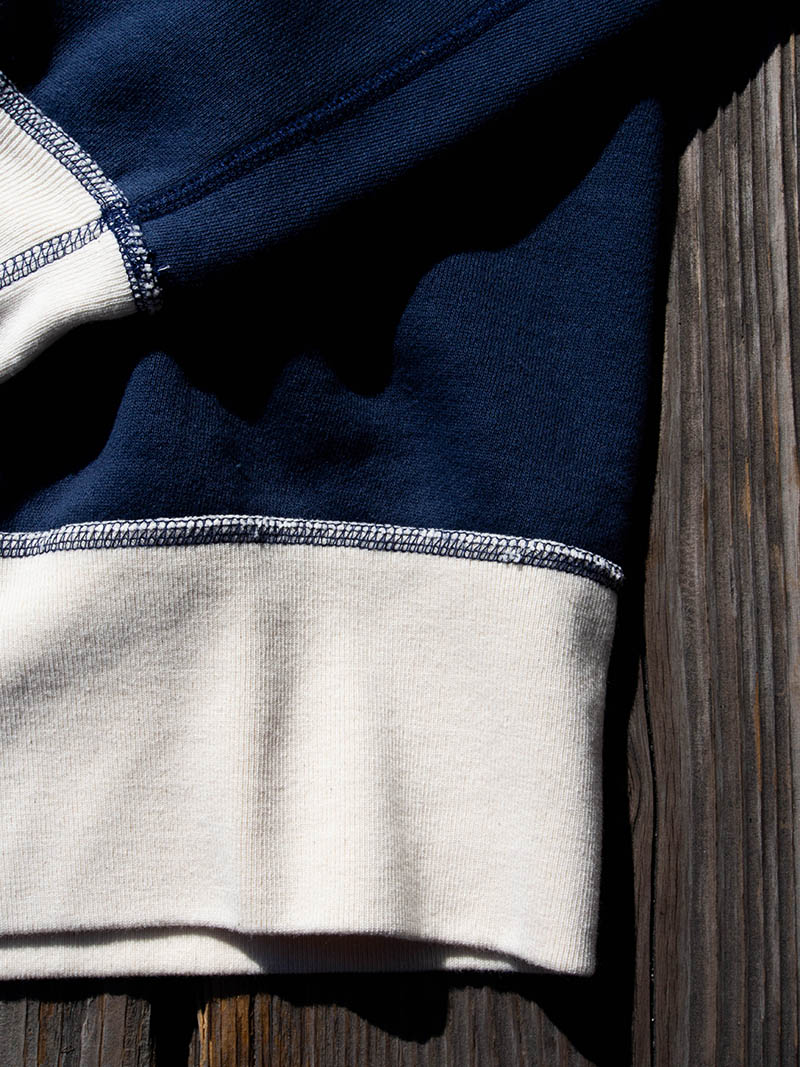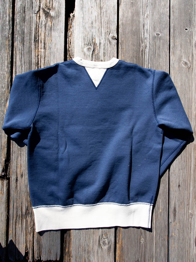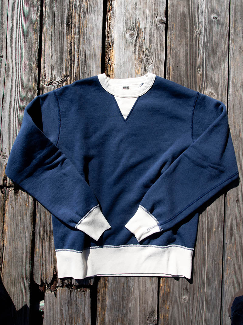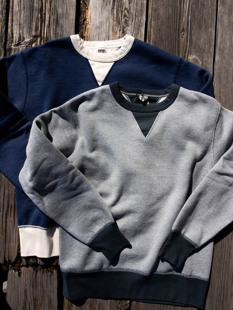 ヘビーウェイトな生地を編み立てる小寸編み機や米国製ミシンによるフラットシーマーの縫製などBARNS OUTFITTTERSならではの生産背景で作り出される定番アイテム。