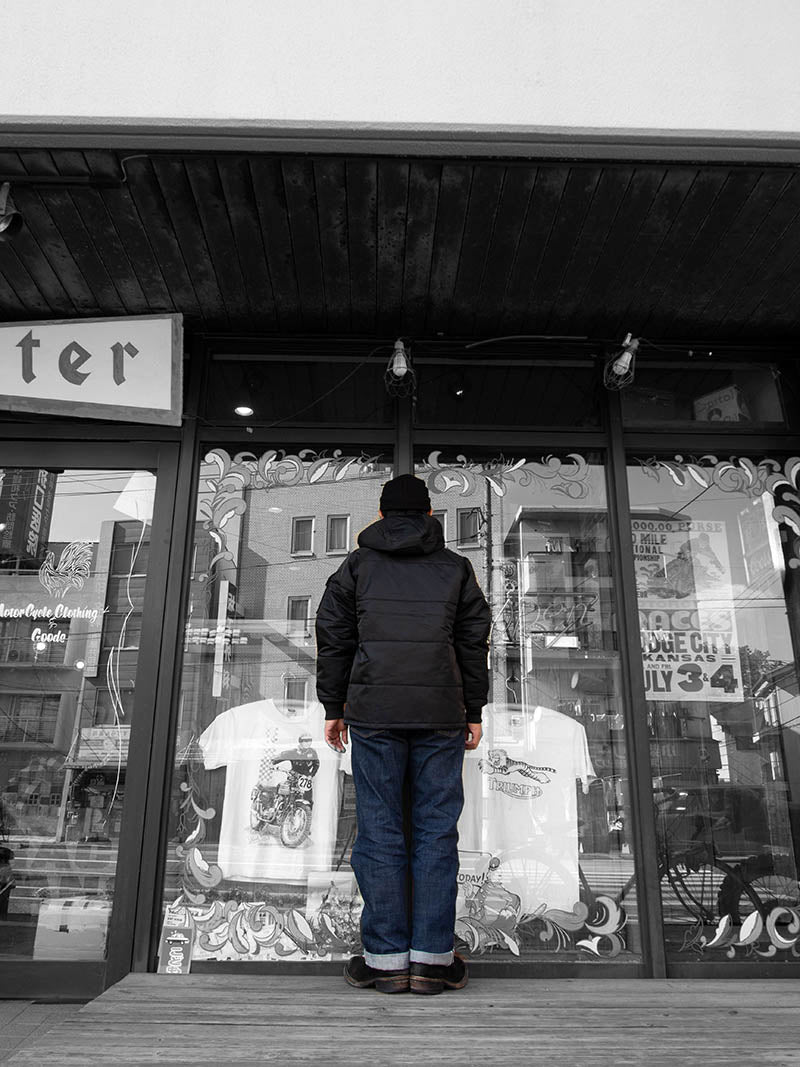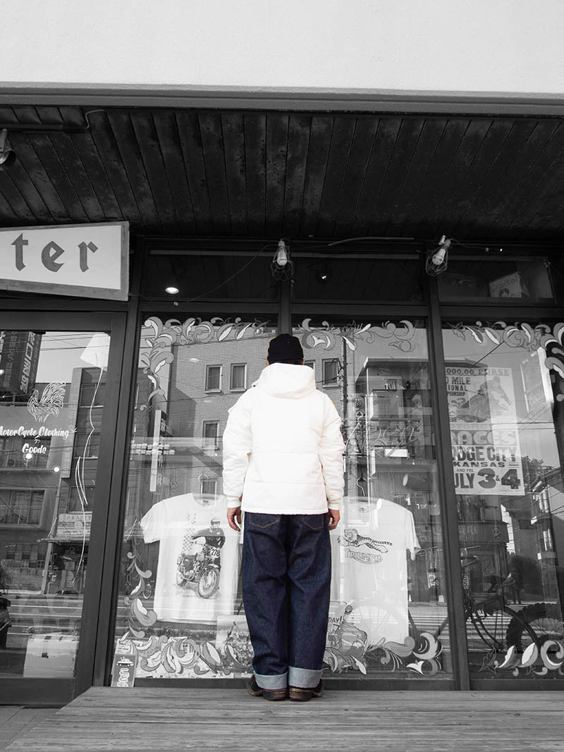 表地にはヘビーナイロンツイルを採用し、ヴィンテージに見られた取り外し可能な大型フードを新たにセット。