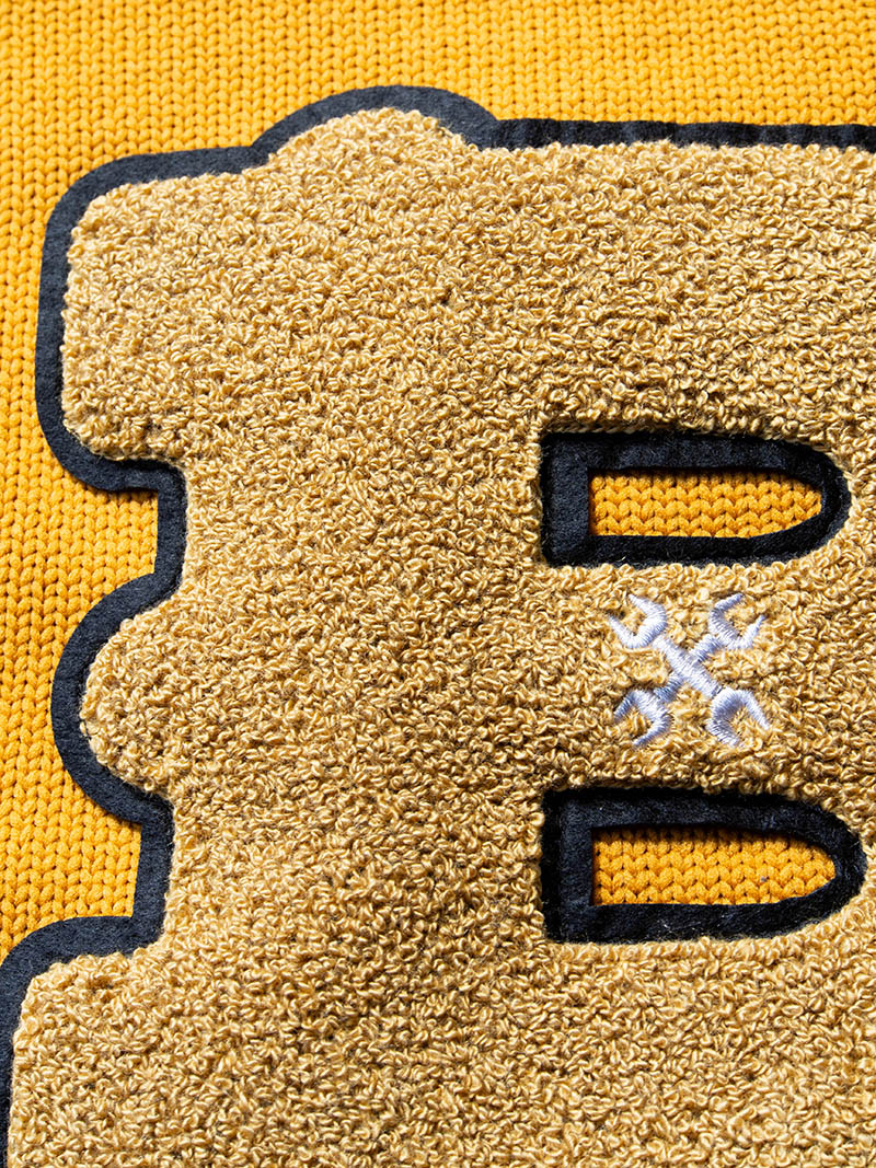 60年代スタイルにインスパイアされたデザインは、特徴的な大型シニールワッペンと、当時のデザインを再現したオリジナルボタンが魅力的です。また60年代のタイトシルエットから現代的なサイジングにアップデートされており、今のスタイルにぴったりのカーディガンです。