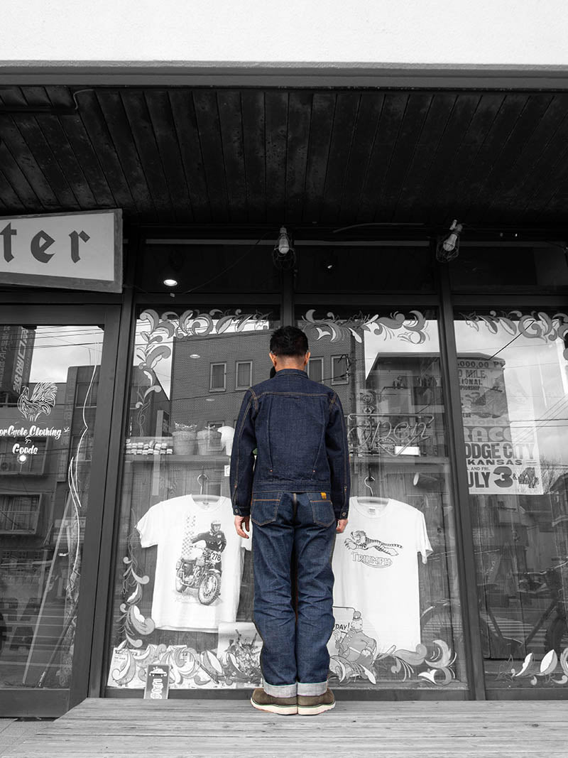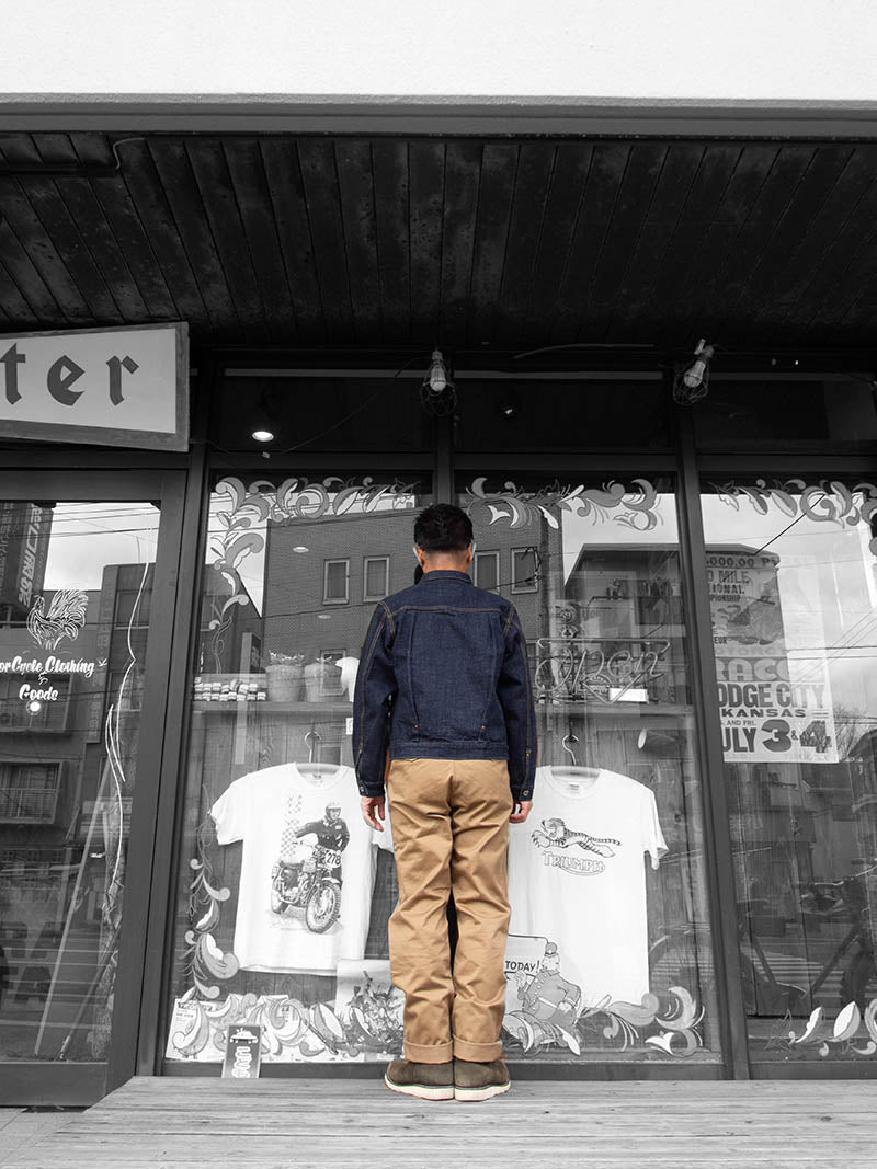 TROPHY不朽のダートデニムで製作したボタンジャケット。