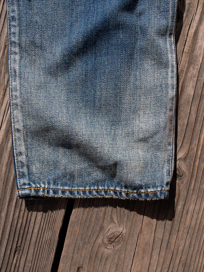 モモ部分やバックポケット、ポケット口など、ジーンズ着用を続けると自然に色落ちする部分をナチュラルに再現。穿き始めから何年も穿き込んだ風合いでお楽しみいただけます。