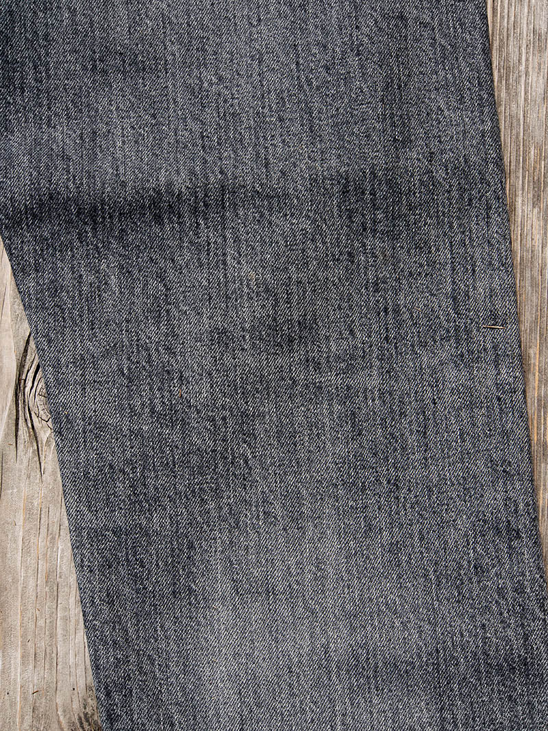 当時の生地を分析し、空紡糸のドライタッチな質感や経糸の長いムラ感を再現し、旧式力織機でゆっくりと製織したセルビッチデニムを使用。