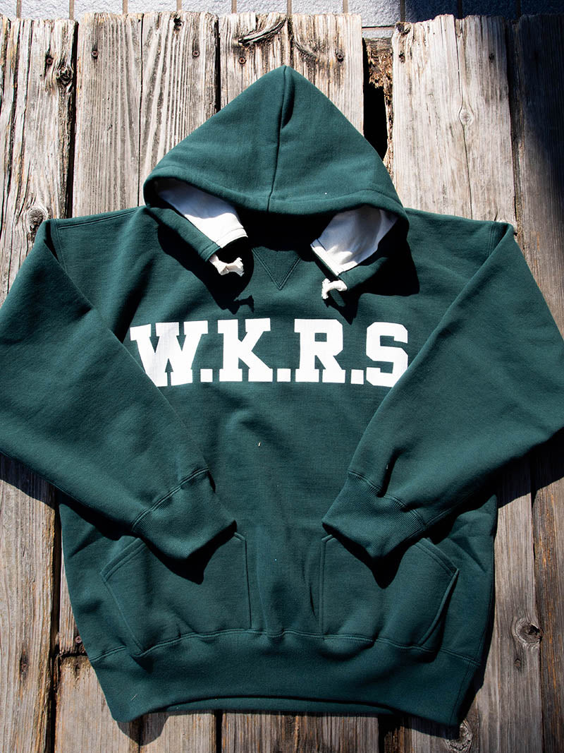 ビンテージを色々見ていたら発見した仕様。おそらく、フード裏までボディと同じ裏毛だと厚みがありすぎて洗濯したと き本当に乾きが悪い。そのあたりを解消するためにフード裏だけは別生地にしたのだと想像しています。